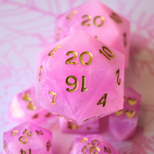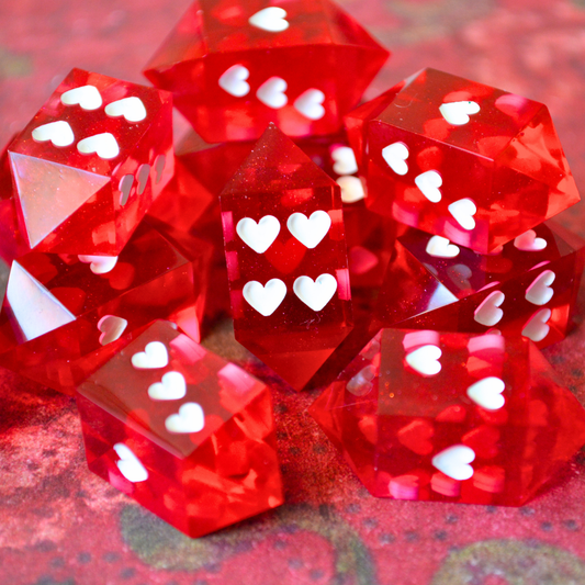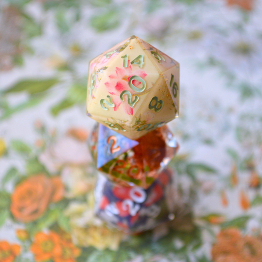 Single dice from 55mm Divination and 40mm Chonk d20s to logo d20s and d6s! It's Singles' Night at 7LD!
