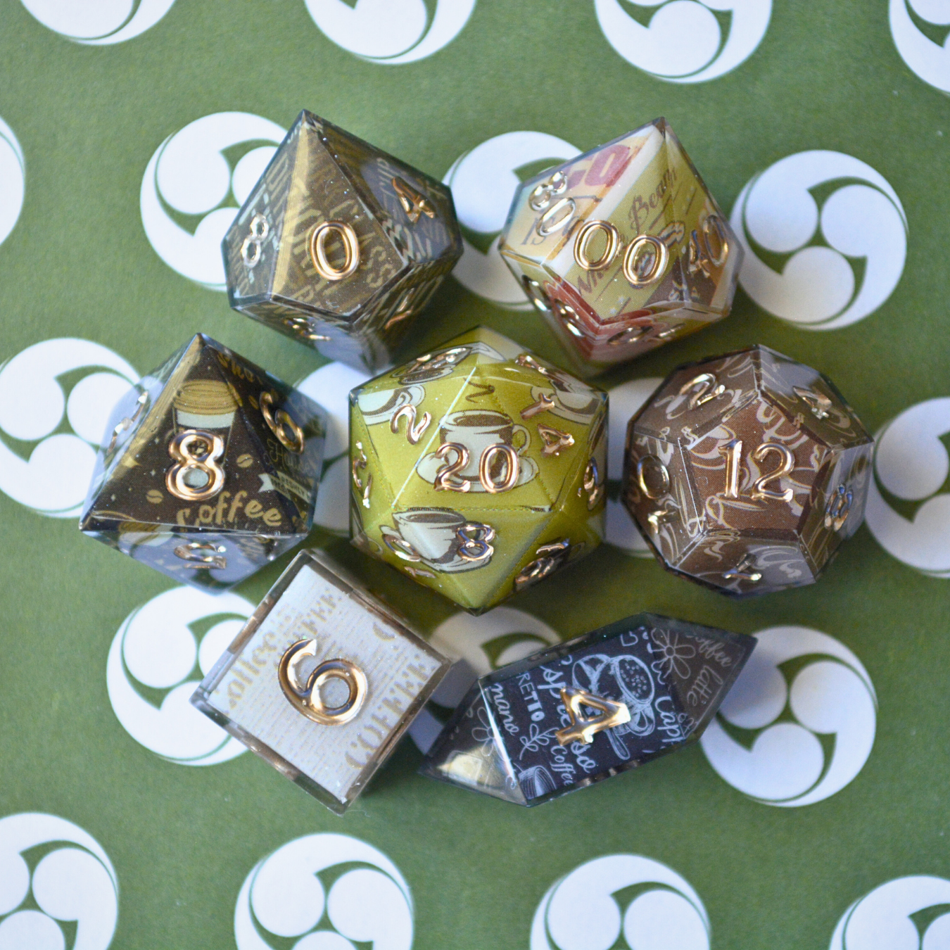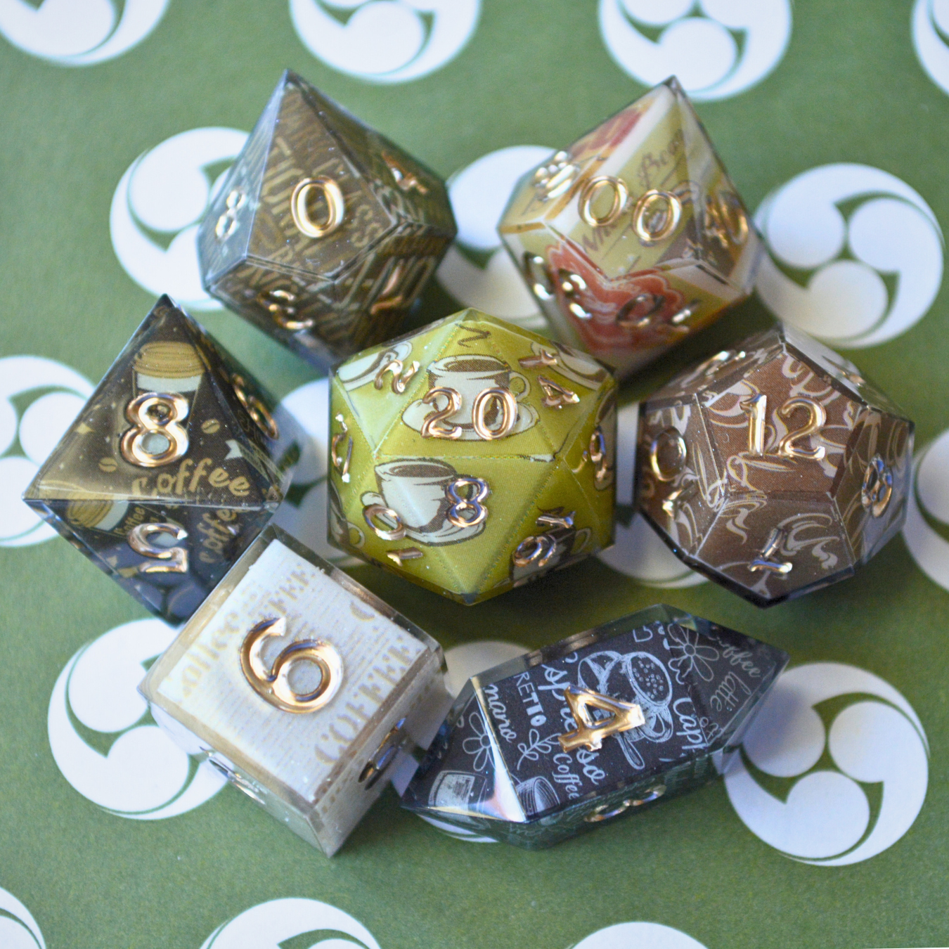 As is the nature of all handmade items, these dice may have minor handmade marks that reflect the hard work, time, and love put into making them. These marks will not impact their rollability in any way. They can include microscratches, signs of UV repair patches, breached inclusions, tiny bubbles (which can happen despite using a pressure pot), and/or mold marks. Any handmade marks will be listed with each set. Please review pictures and videos before purchasing.