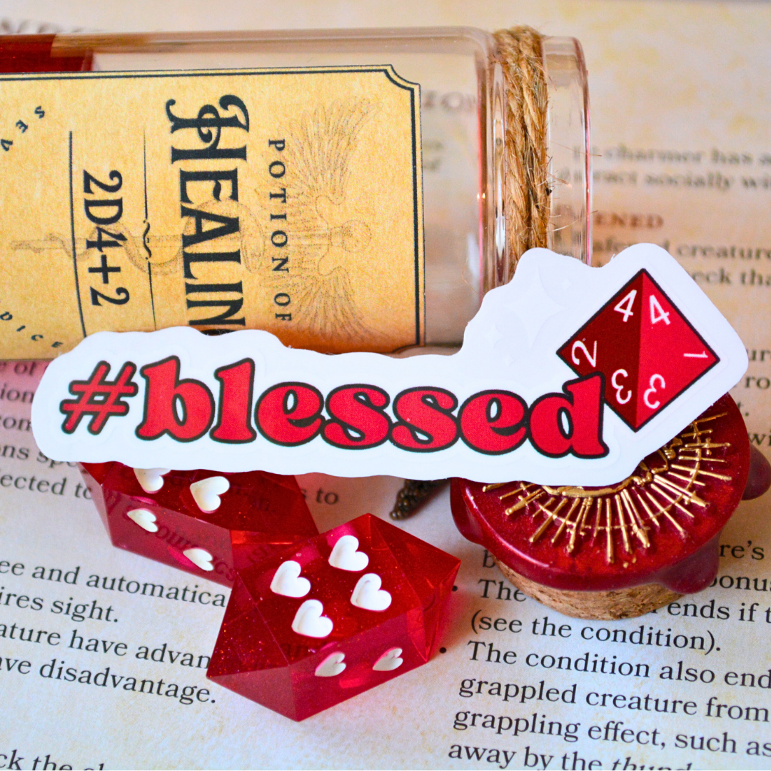 For the cleric mains and those who appreciate a little help from a higher power. Get #blessed, nerds, and collect your helpful little d4 with this clear 3" sticker.