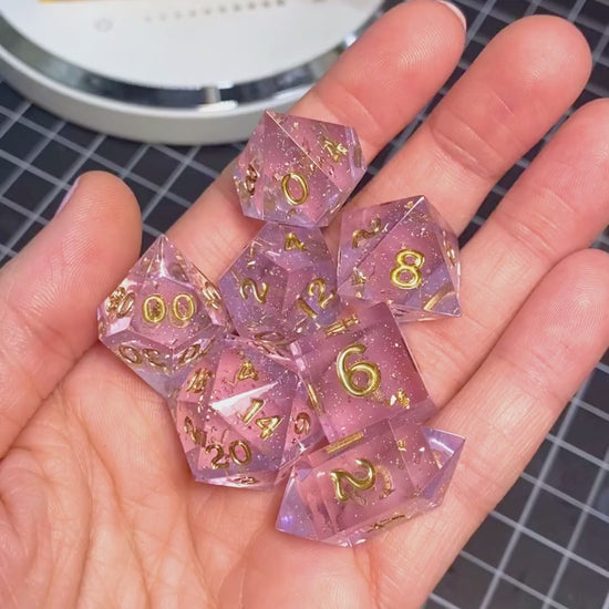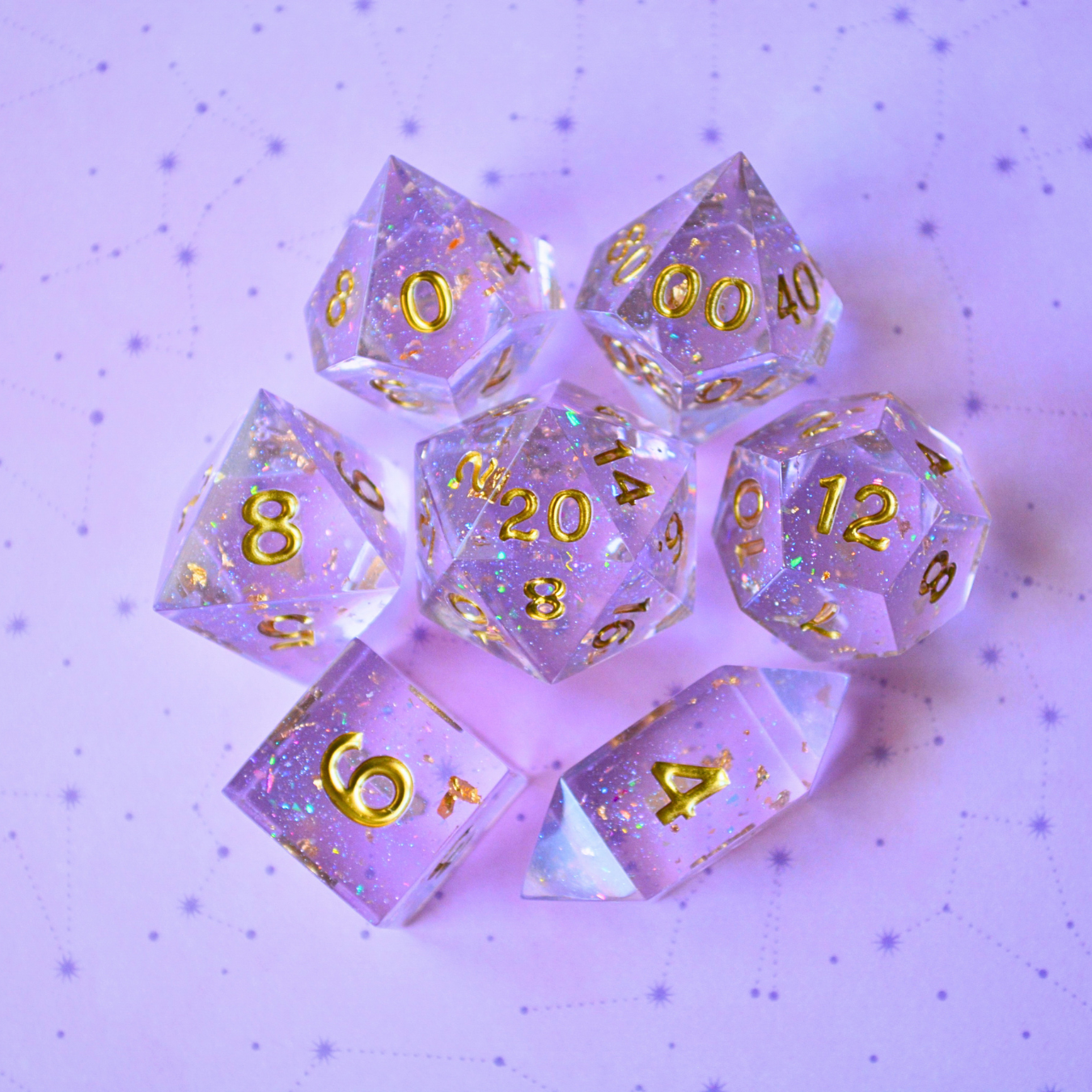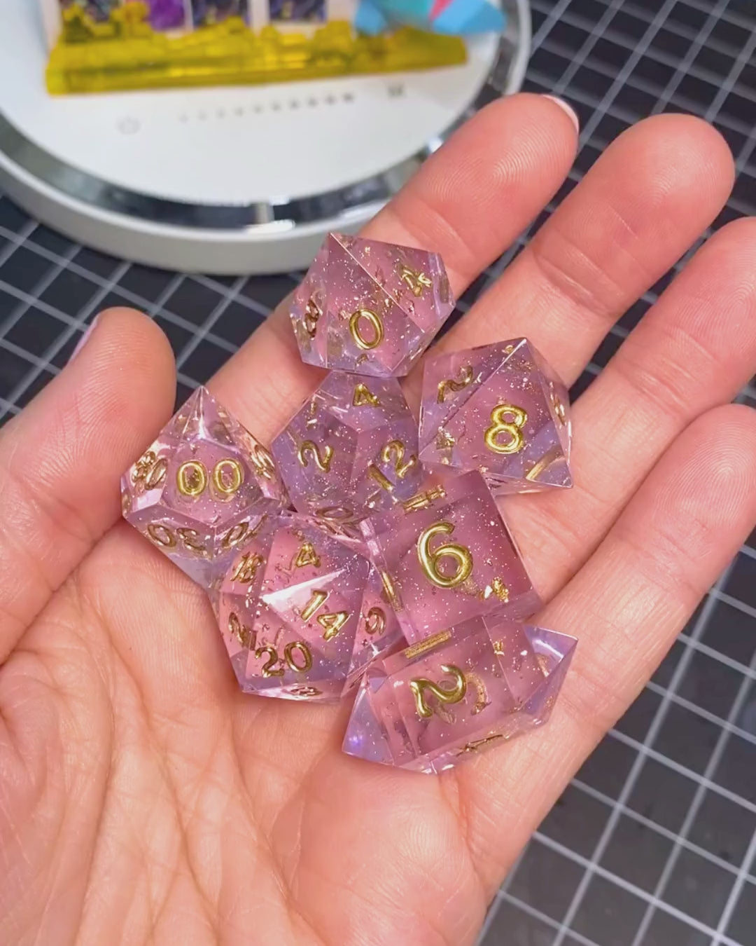 As is the nature of all handmade items, these dice may have minor handmade marks that reflect the hard work, time, and love put into making them. These marks will not impact their rollability in any way. They can include microscratches, signs of UV repair patches, breached inclusions, tiny bubbles (which can happen despite using a pressure pot), and/or mold marks. Any handmade marks will be listed with each set. Please review pictures and videos before purchasing.