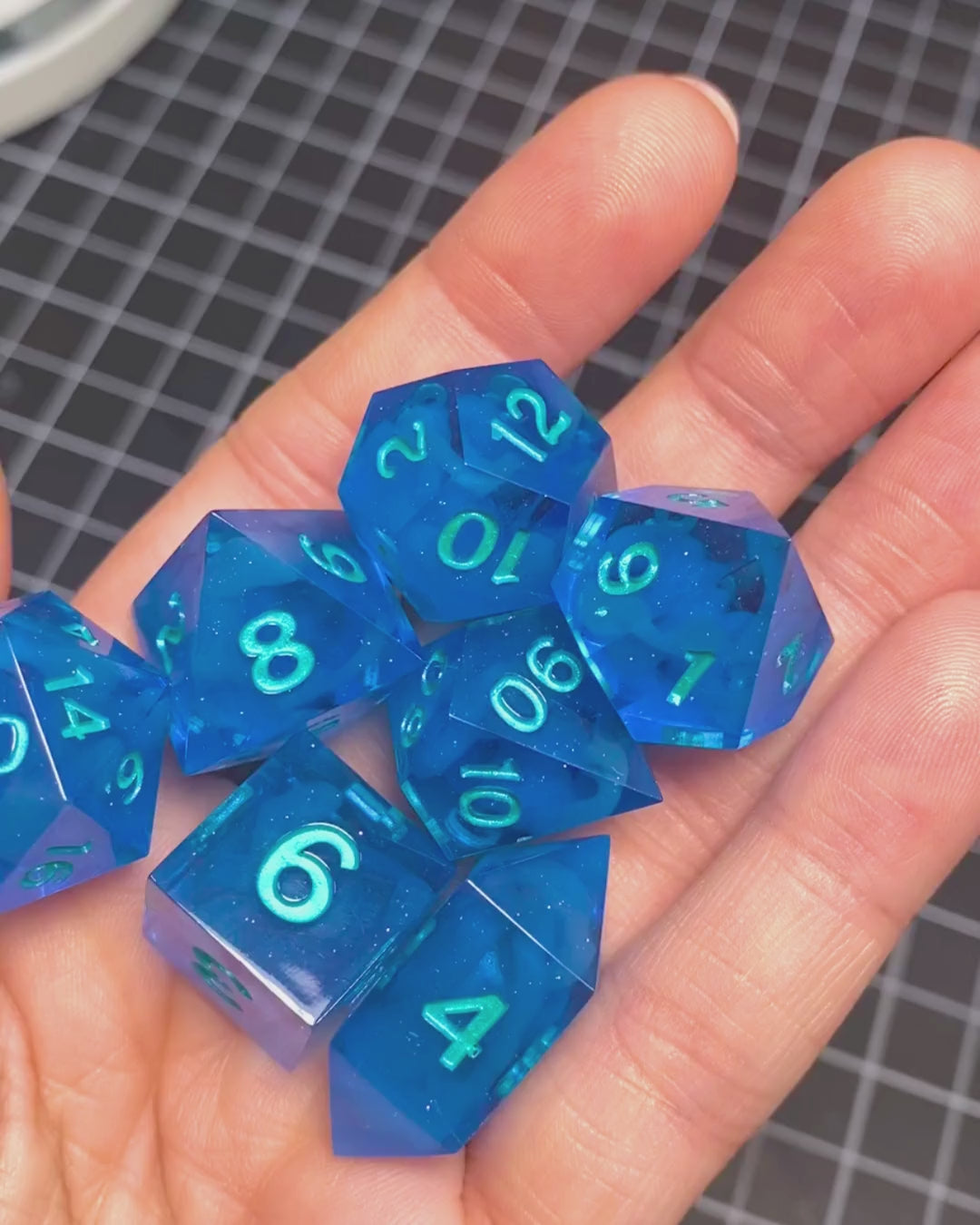 As is the nature of all handmade items, these dice may have minor handmade marks that reflect the hard work, time, and love put into making them. These marks will not impact their rollability in any way. They can include microscratches, signs of UV repair patches, breached inclusions, tiny bubbles (which can happen despite using a pressure pot), and/or mold marks. Any handmade marks will be listed with each set. Please review pictures and videos before purchasing.
