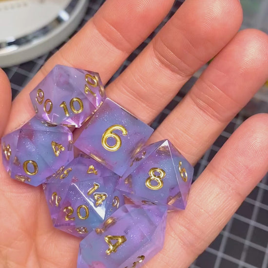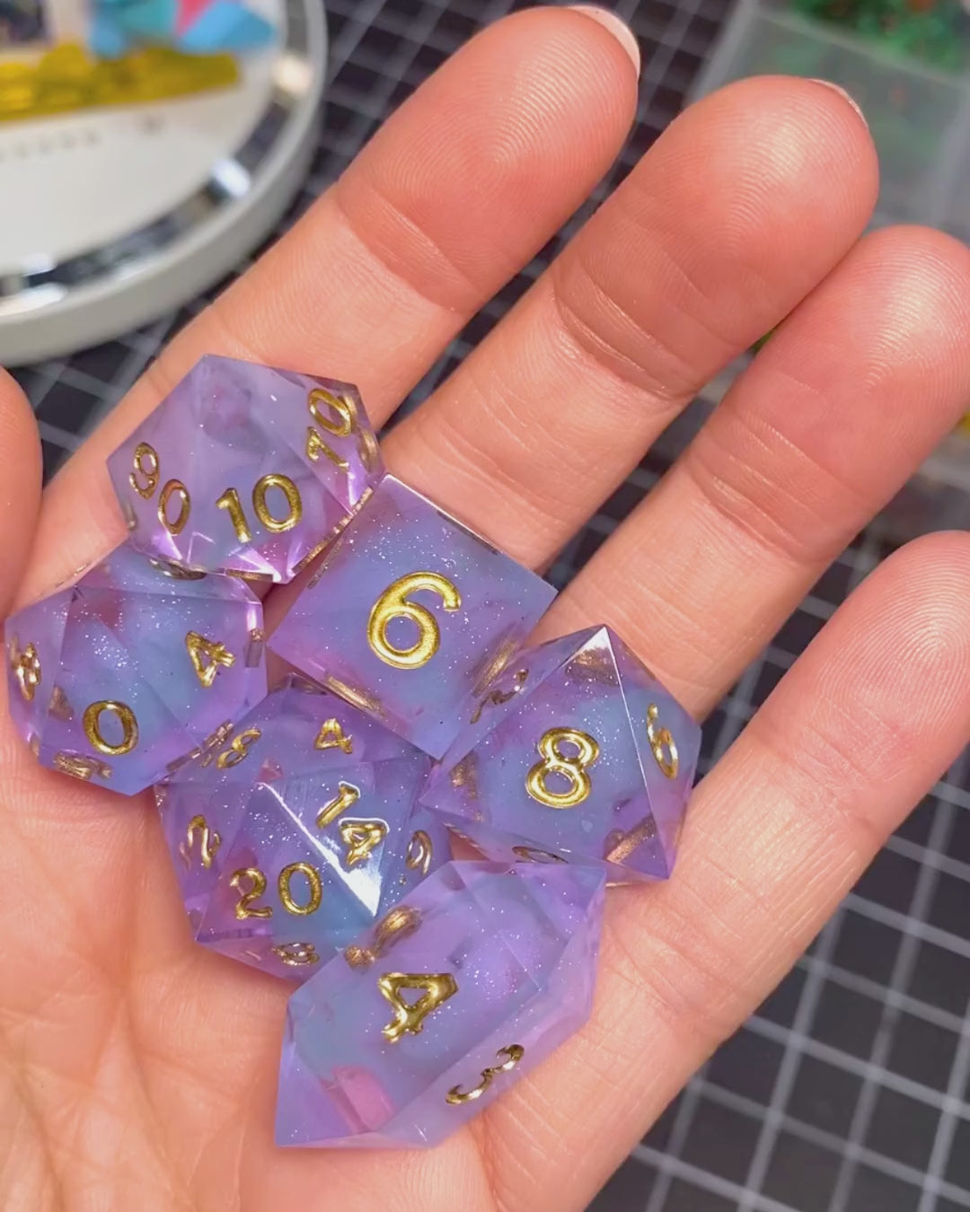 As is the nature of all handmade items, these dice may have minor handmade marks that reflect the hard work, time, and love put into making them. These marks will not impact their rollability in any way. They can include microscratches, signs of UV repair patches, breached inclusions, tiny bubbles (which can happen despite using a pressure pot), and/or mold marks. Any handmade marks will be listed with each set. Please review pictures and videos before purchasing.