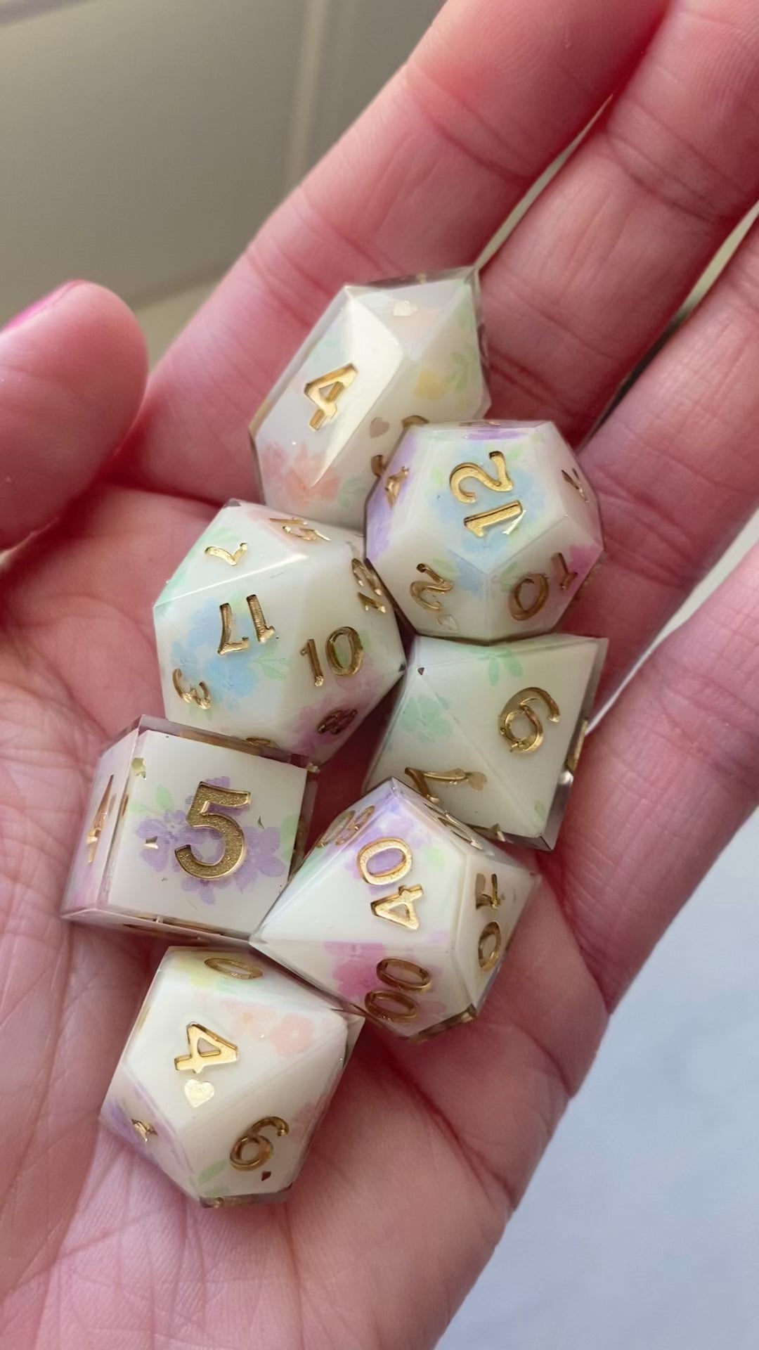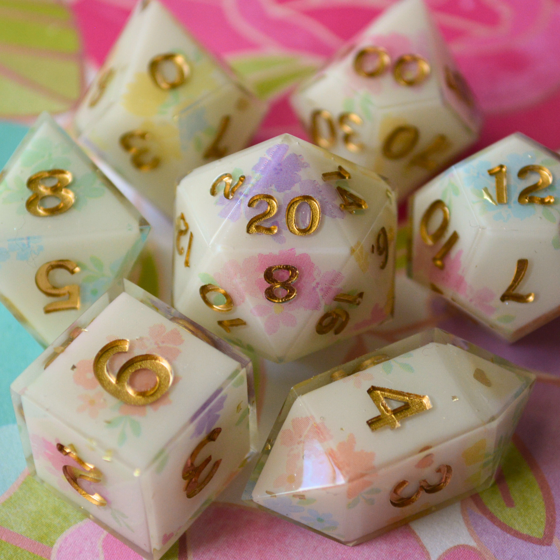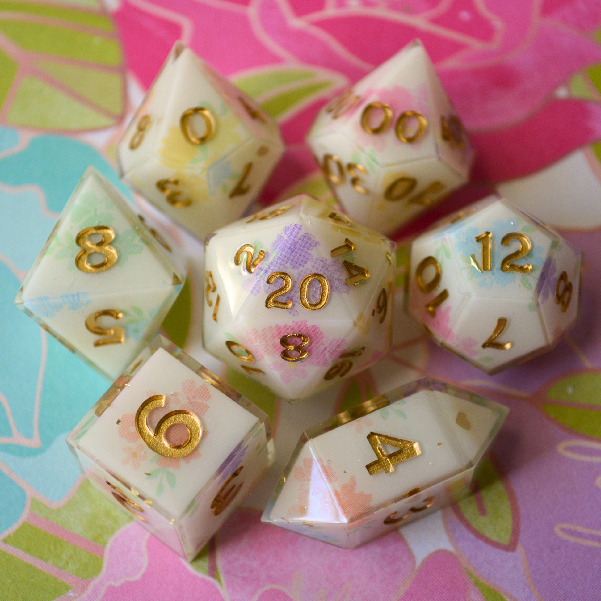 As is the nature of all handmade items, these dice may have minor handmade marks that reflect the hard work, time, and love put into making them. These marks will not impact their rollability in any way. They can include microscratches, signs of UV repair patches, breached inclusions, tiny bubbles (which can happen despite using a pressure pot), and/or mold marks. Any handmade marks will be listed with each set. Please review pictures and videos before purchasing.