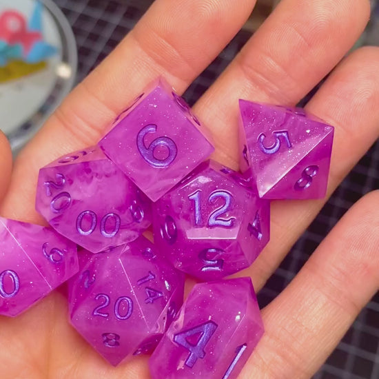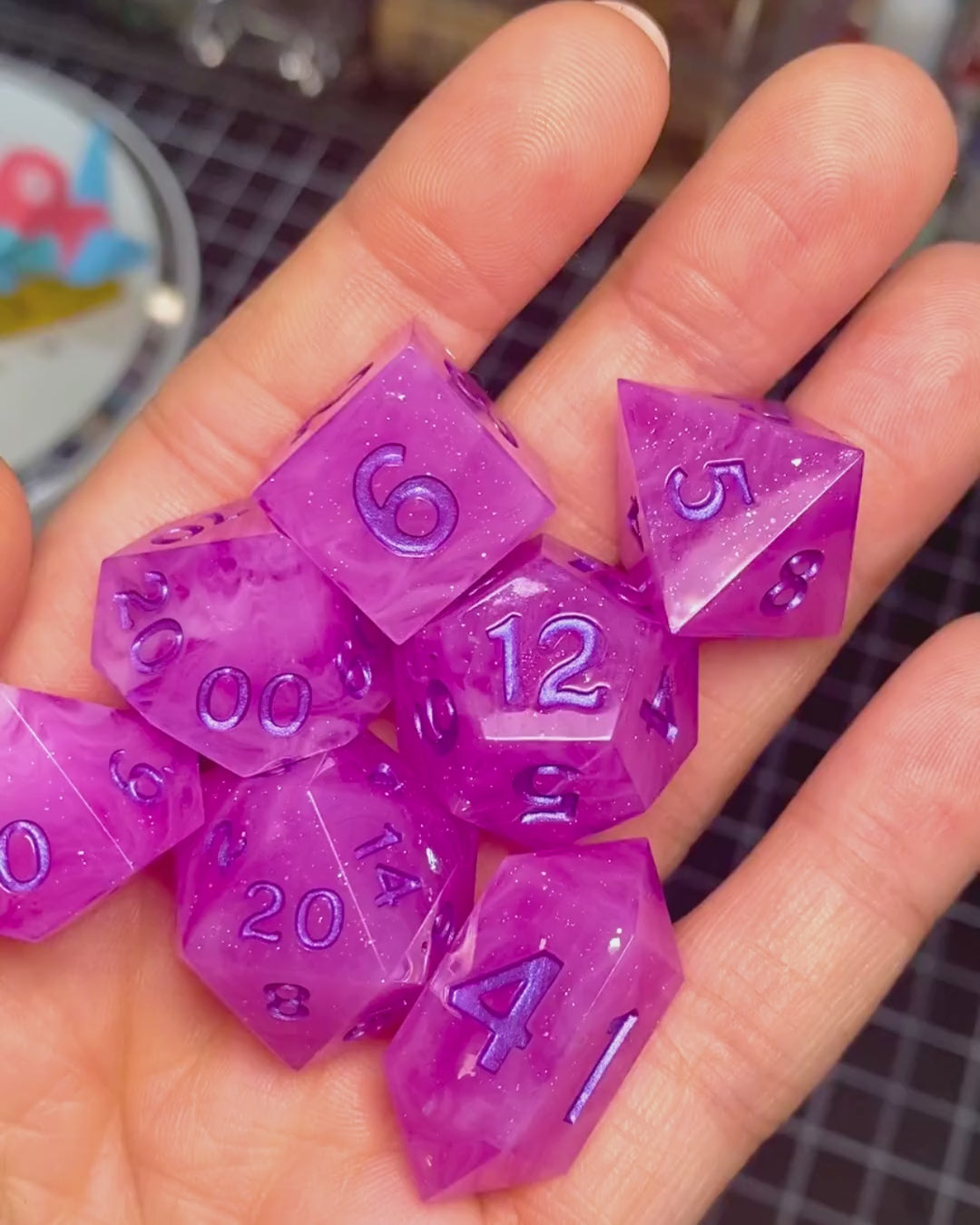 As is the nature of all handmade items, these dice may have minor handmade marks that reflect the hard work, time, and love put into making them. These marks will not impact their rollability in any way. They can include microscratches, signs of UV repair patches, breached inclusions, tiny bubbles (which can happen despite using a pressure pot), and/or mold marks. Any handmade marks will be listed with each set. Please review pictures and videos before purchasing.