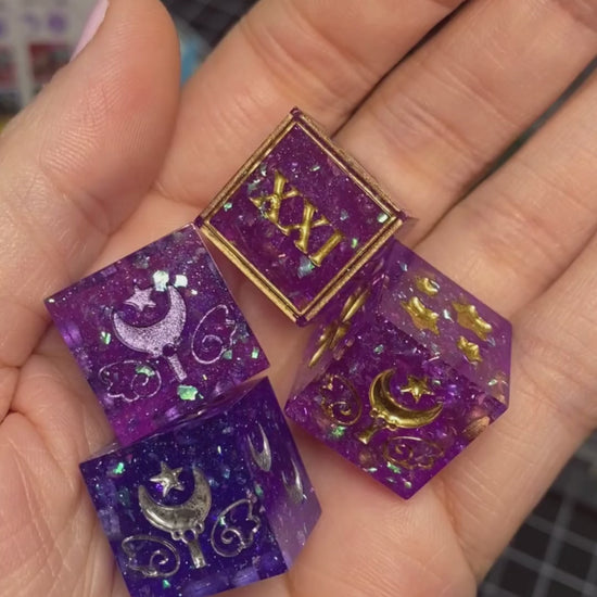 This listing is for a single graphic d6! Choose between four different sparkling and colorshifting colorways in these Kawaii and Tarot d6s.
