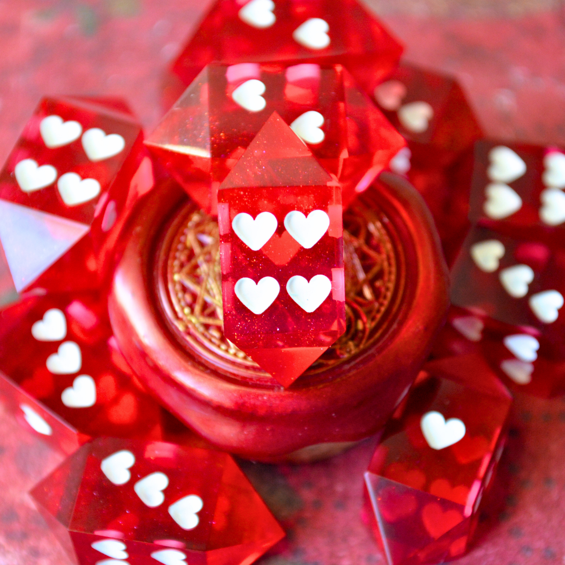 *As is the nature of all handmade items, these dice may have minor handmade marks that reflect the hard work, time, and love put into making them. These marks will not impact their rollability in any way. They can include microscratches, signs of UV repair patches, breached inclusions, tiny bubbles (which can happen despite using a pressure pot), and/or mold marks. Any significant handmade marks will be listed with each set. Please review pictures and videos before purchasing.