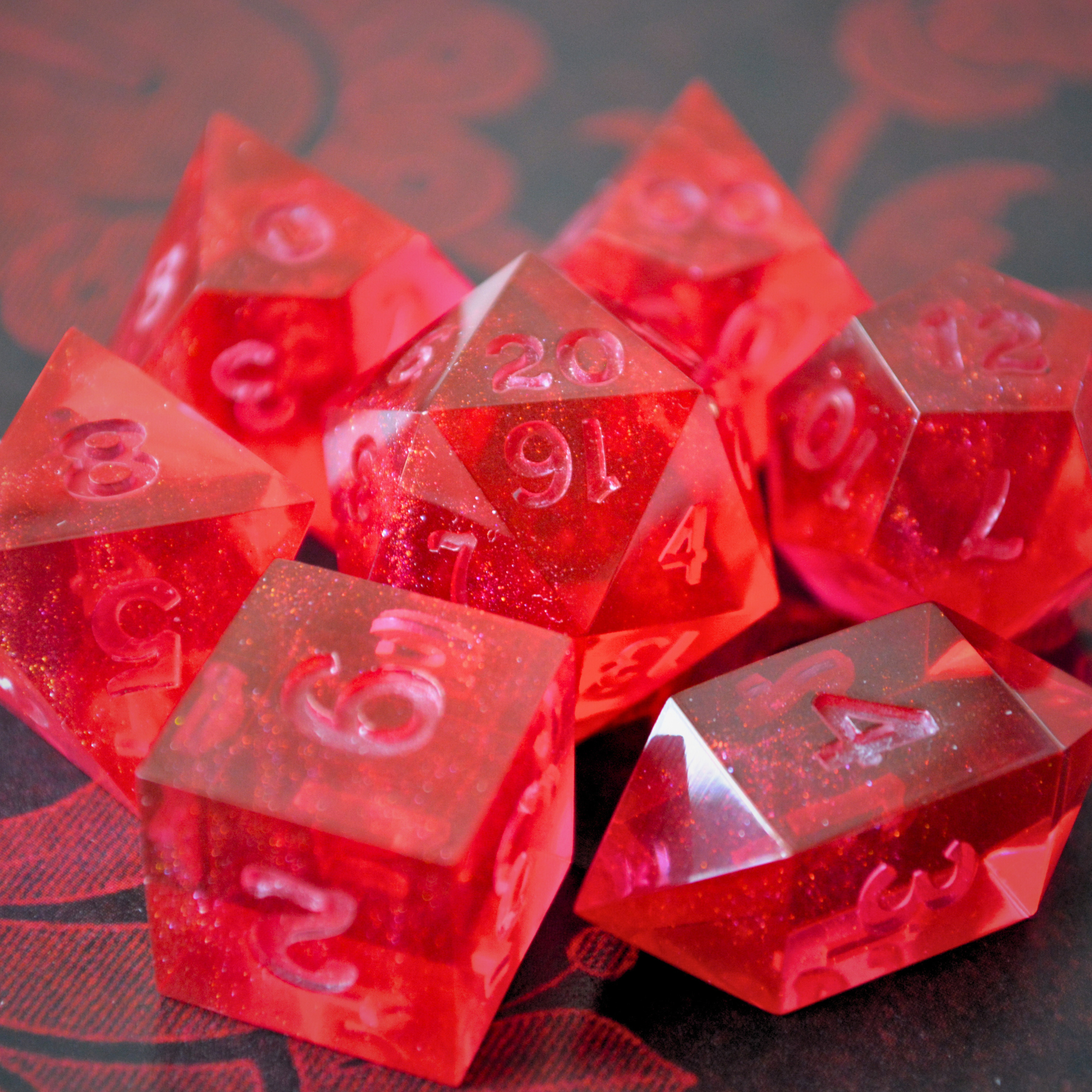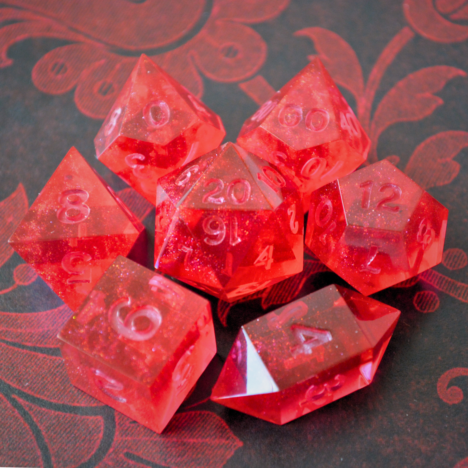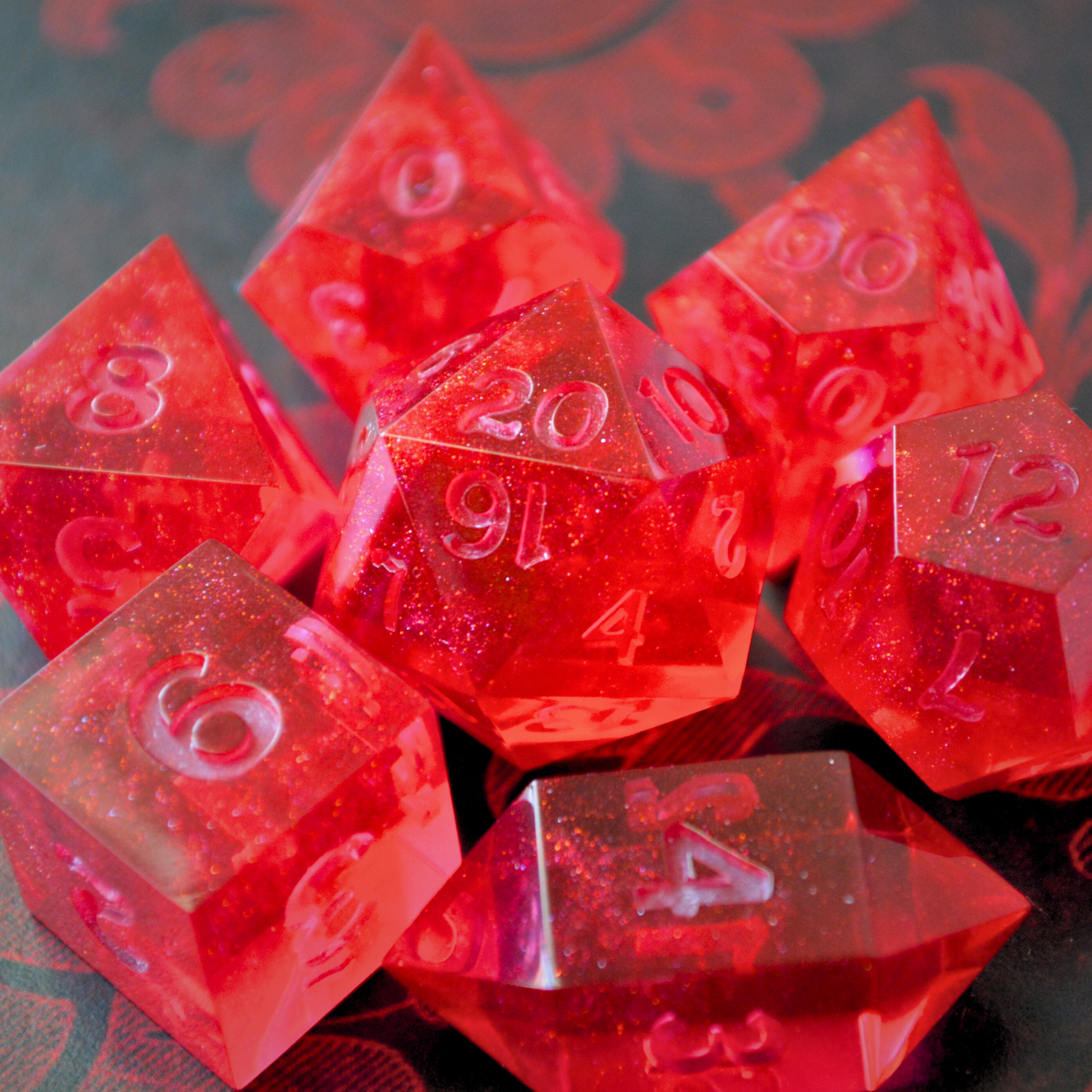 As is the nature of all handmade items, these dice may have minor handmade marks that reflect the hard work, time, and love put into making them. These marks will not impact their rollability in any way. They can include microscratches, signs of UV repair patches, breached inclusions, tiny bubbles (which can happen despite using a pressure pot), and/or mold marks. Any handmade marks will be listed with each set. Please review pictures and videos before purchasing.