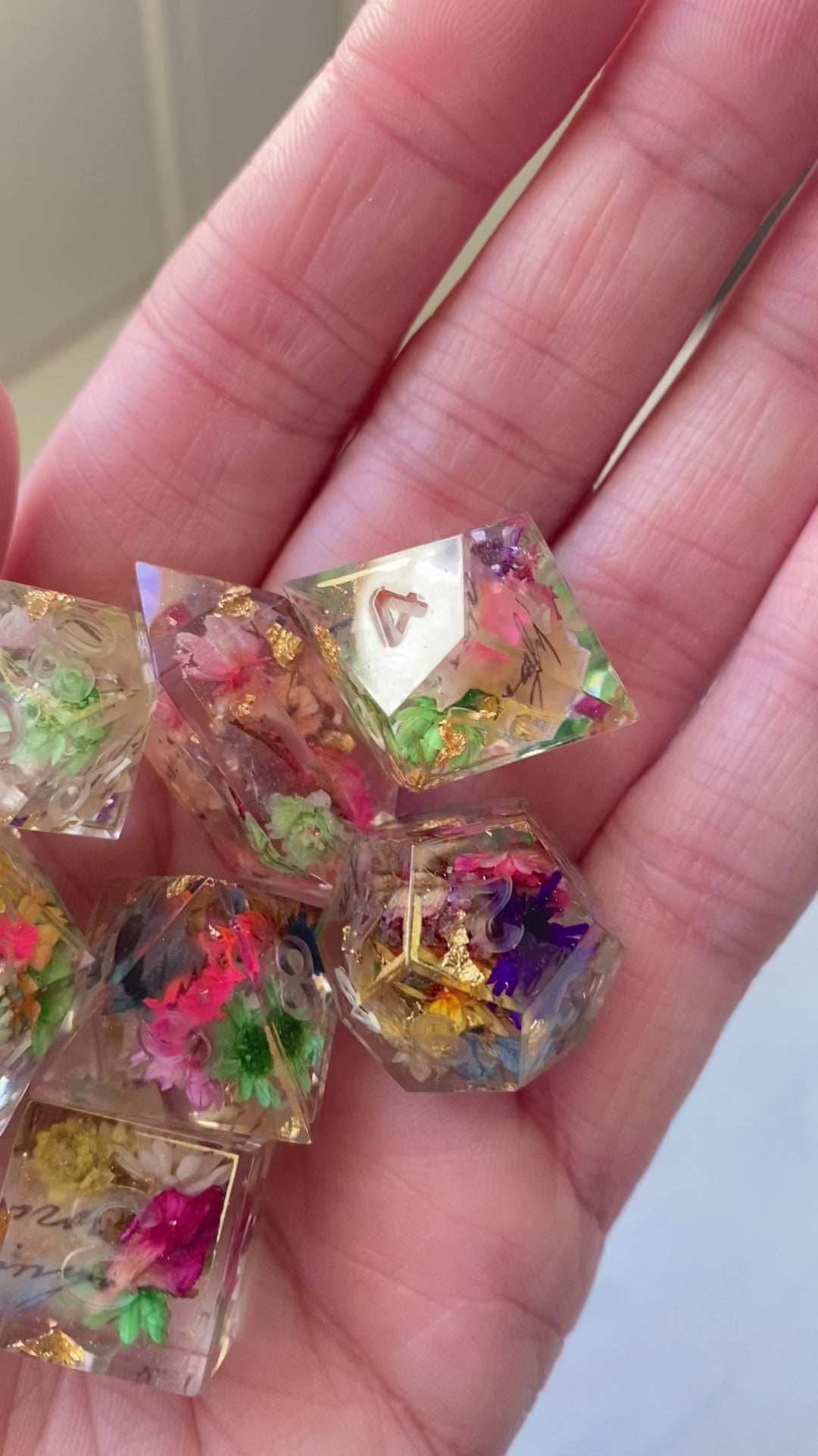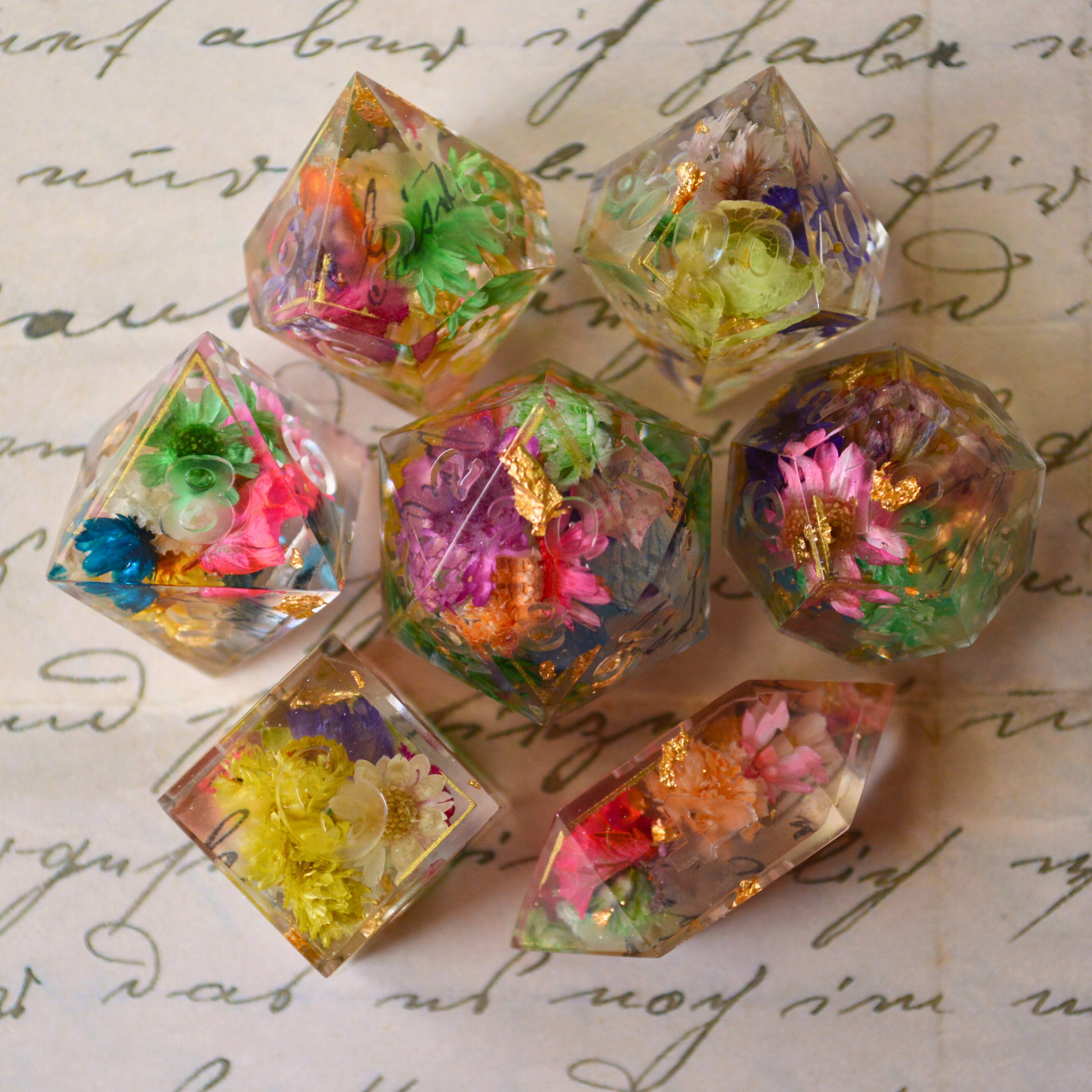 As is the nature of all handmade items, these dice may have minor handmade marks that reflect the hard work, time, and love put into making them. These marks will not impact their rollability in any way. They can include microscratches, signs of UV repair patches, breached inclusions, tiny bubbles (which can happen despite using a pressure pot), and/or mold marks. Any handmade marks will be listed with each set. Please review pictures and videos before purchasing.