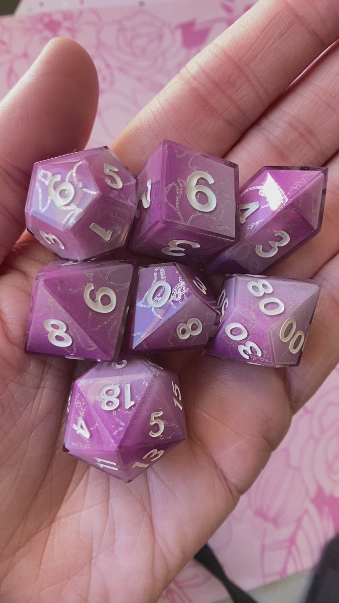 This 7pc set channels Eartha Kitt's ballad with its soft shades of lilac and hypnotizing flashes of silver, inked in a bright contrast white.