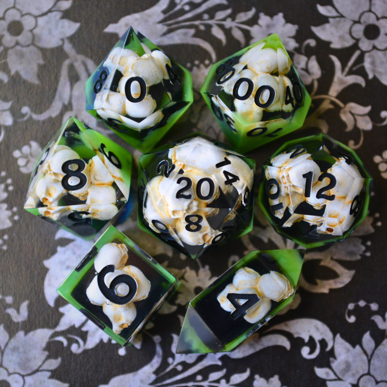 As is the nature of all handmade items, these dice may have minor handmade marks that reflect the hard work, time, and love put into making them. These marks will not impact their rollability in any way. They can include microscratches, signs of UV repair patches, breached inclusions, tiny bubbles (which can happen despite using a pressure pot), and/or mold marks. Any handmade marks will be listed with each set. Please review pictures and videos before purchasing.