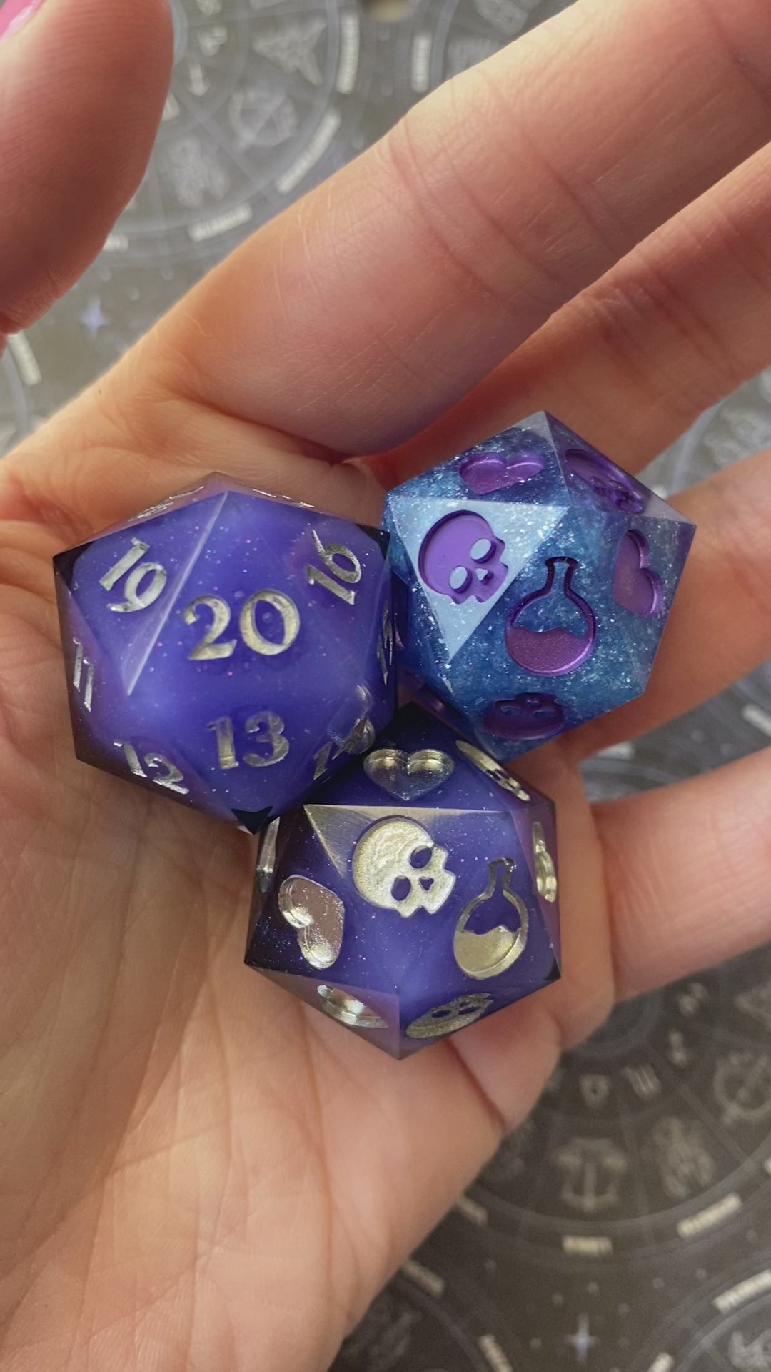 As is the nature of all handmade items, these dice may have minor handmade marks that reflect the hard work, time, and love put into making them. These marks will not impact their rollability in any way. They can include microscratches, signs of UV repair patches, breached inclusions, tiny bubbles (which can happen despite using a pressure pot), and/or mold marks. Any handmade marks will be listed with each set. Please review pictures and videos before purchasing.