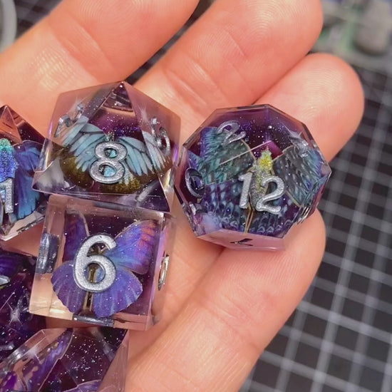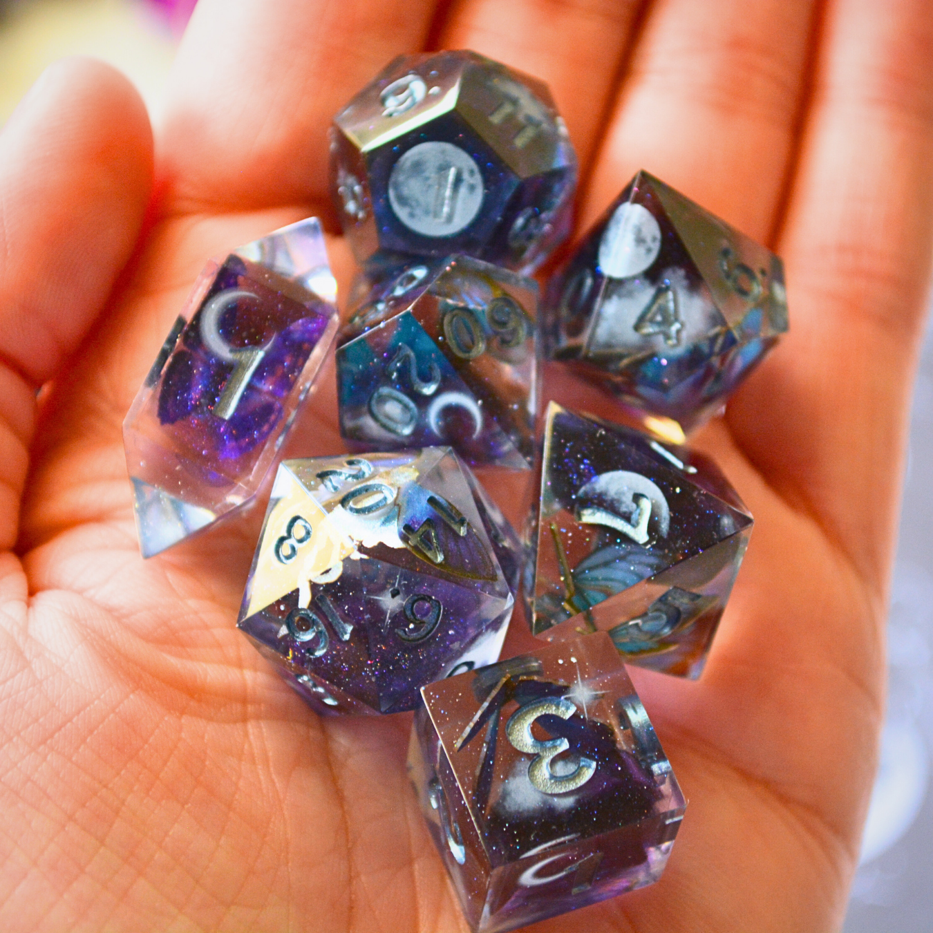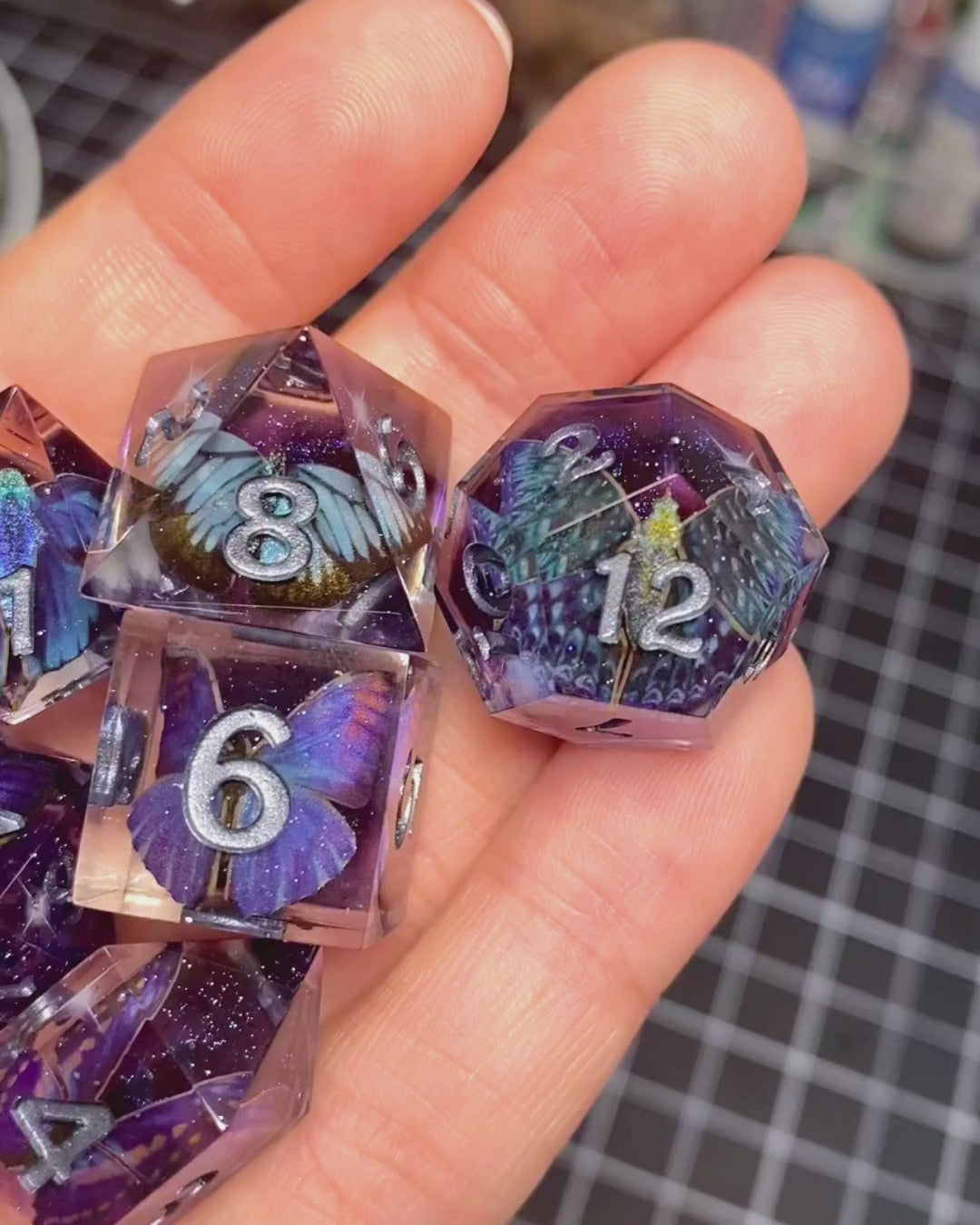 As is the nature of all handmade items, these dice may have minor handmade marks that reflect the hard work, time, and love put into making them. These marks will not impact their rollability in any way. They can include microscratches, signs of UV repair patches, breached inclusions, tiny bubbles (which can happen despite using a pressure pot), and/or mold marks. Any handmade marks will be listed with each set. Please review pictures and videos before purchasing.