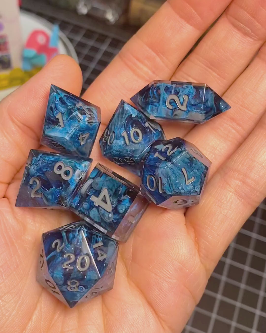 As is the nature of all handmade items, these dice may have minor handmade marks that reflect the hard work, time, and love put into making them. These marks will not impact their rollability in any way. They can include microscratches, signs of UV repair patches, breached inclusions, tiny bubbles (which can happen despite using a pressure pot), and/or mold marks. Any handmade marks will be listed with each set. Please review pictures and videos before purchasing.