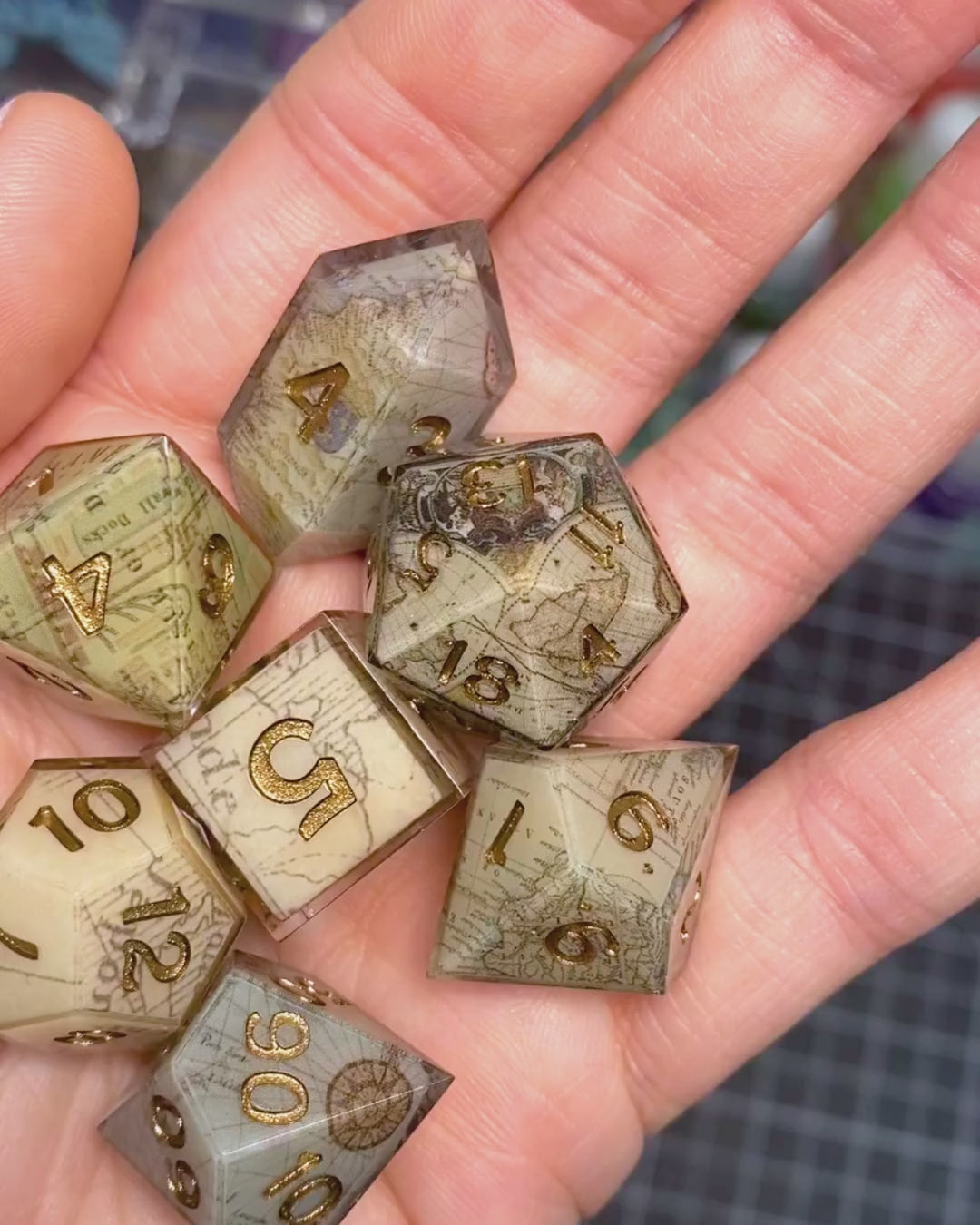 As is the nature of all handmade items, these dice may have minor handmade marks that reflect the hard work, time, and love put into making them. These marks will not impact their rollability in any way. They can include microscratches, signs of UV repair patches, breached inclusions, tiny bubbles (which can happen despite using a pressure pot), and/or mold marks. Any handmade marks will be listed with each set. Please review pictures and videos before purchasing.